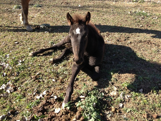 Blackie Mac was a disappointment from the outset – a solid black colt born into a family of Appaloosa horses where if you don’t come with spots we’d rather not have you. Everyone just bit their lip and said nice things about how cute and spunky he was. That wasn’t a lie, but almost all foals are cute and spunky. Here’s a video of one born just a few days ago – this time a filly. She’s supposed to look like her mom, not like this. The mare in this video is Delia, a beautifully colored foundation mare who was so ornery as a filly that we named her after Johnny Cash’s song, “Delia’s Gone.”