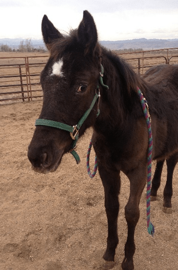 He developed a normal set of gaits, and within a year we found a buyer for him. Today Blackie Mac isn’t black. He’s the color of a wad of lint from the filter of a clothes drier. He is ridden nearly every day, is beloved by his owner, and he’s had a good life despite his unfortunate coloration.