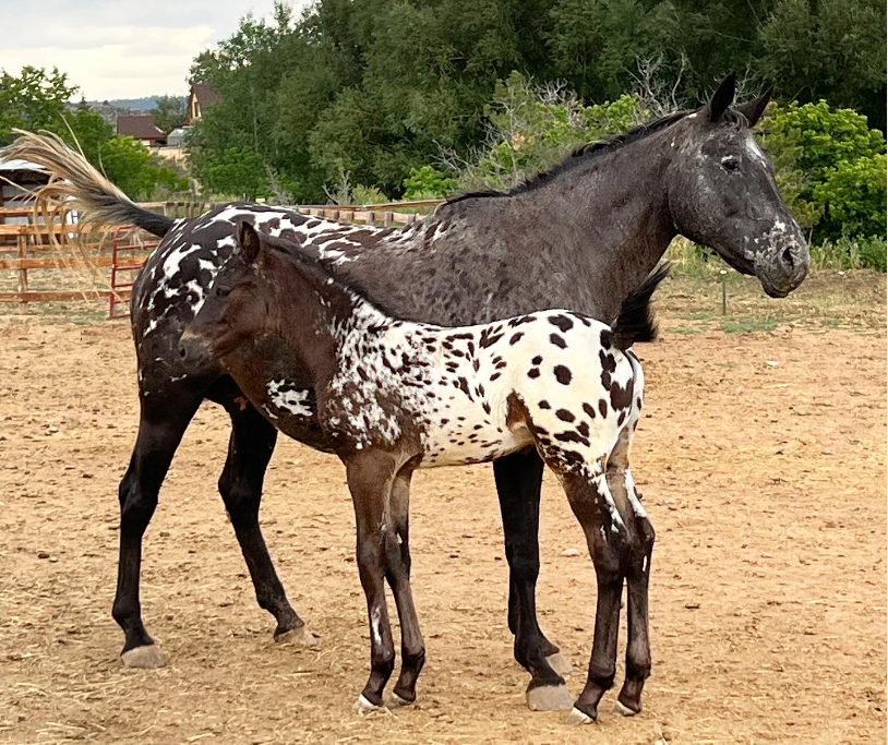 Mia continues to be a foundation broodmare for Maxey Appys, and is shown here with one of her colts. Every saga includes a tragedy, and in this one it was Big Dawn. The vet found that she’d sustained several rib fractures in the pounding she took defending Blackie Mac. Not long after that a possible buyer took her for a week trial in case that might be her forever home. She died overnight in her stall a few days later, cause unknown.