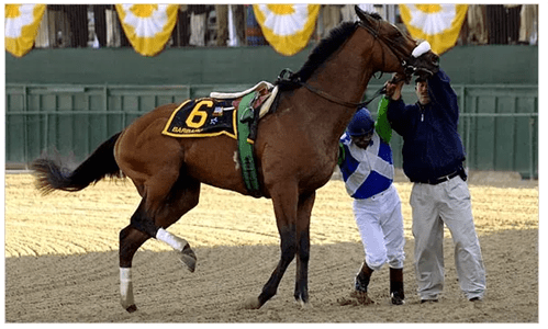 Even after a successful surgery to repair the fracture, if the limb is tender and sore, the horse won’t bear any weight on it. Instead, it shifts its weight onto the contralateral supporting limb. The horse never takes the weight off this good foot, cutting off the blood supply to that hoof. Without the oxygen and nutrients supplied by blood flow, the laminae, a Velcro-like support network that keeps the coffin bone suspended within the hoof capsule, become inflamed and dies. As laminitis progresses, the supportive network formed by the laminae collapses. The coffin bone separates completely from the hoof, and the weight of the horse forces the bone downward, sometimes clear through the sole of the hoof. It’s incredibly painful for the horse, and horses that develop laminitis are usually euthanized.